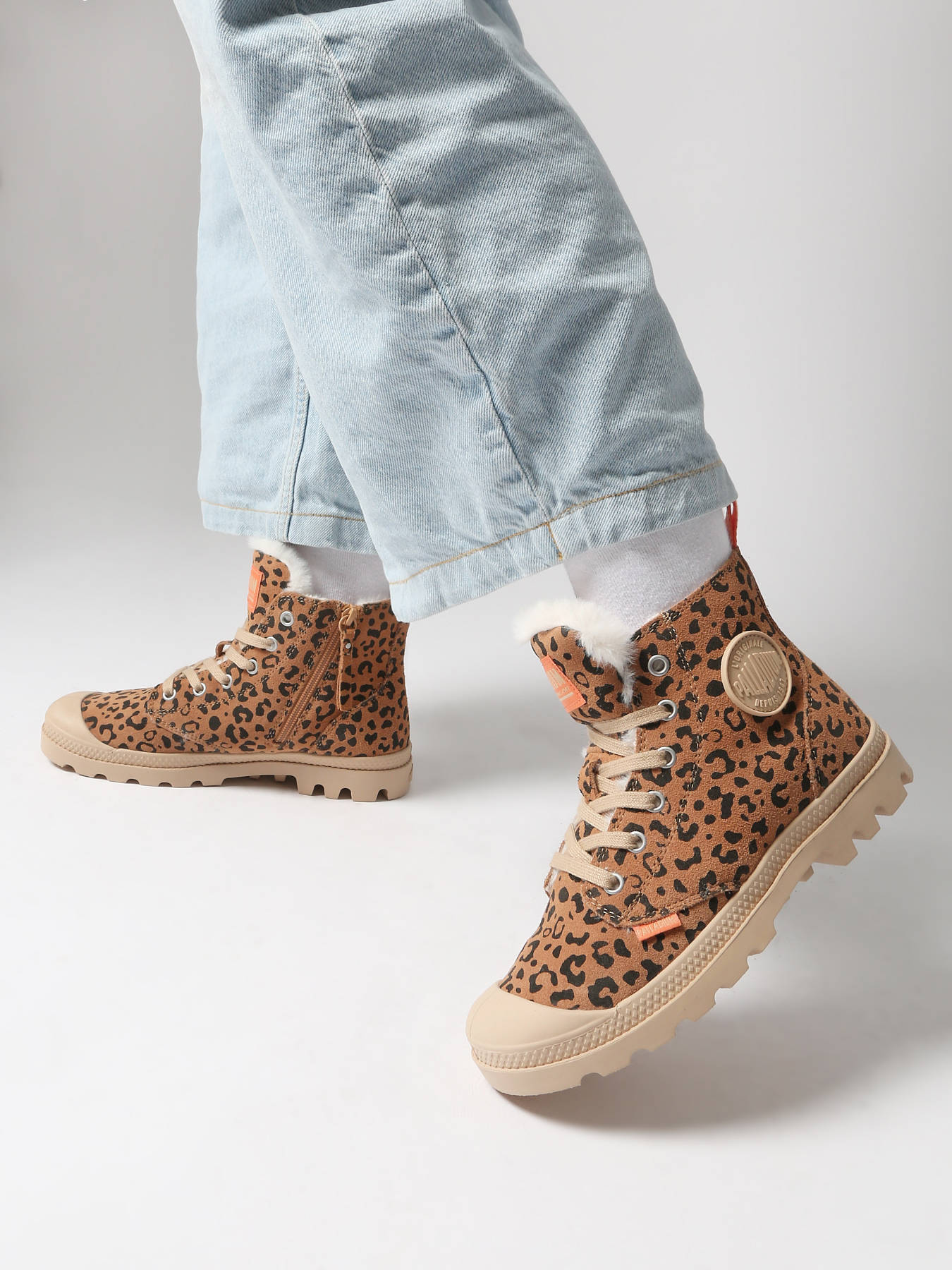 Show off a bold and wild style with the PAMPA HI ZIP WL LEO PALLADIUM ANKLE BOOTS, enhanced by a trendy leopard print. Their suede-finish leather upper provides elegance and durability, while the synthetic fur lining ensures warmth and optimal comfort. Practical and easy to slip on, these boots feature a lace-up and zip closure, offering perfect support and a customized fit. The removable synthetic insole guarantees comfort and breathability. Durable and stylish, the PAMPA HI ZIP WL LEO PALLADIUM ANKLE BOOTS combine daring design, practicality, and comfort, perfect for expressing your personality with a wild and trendy touch every day.