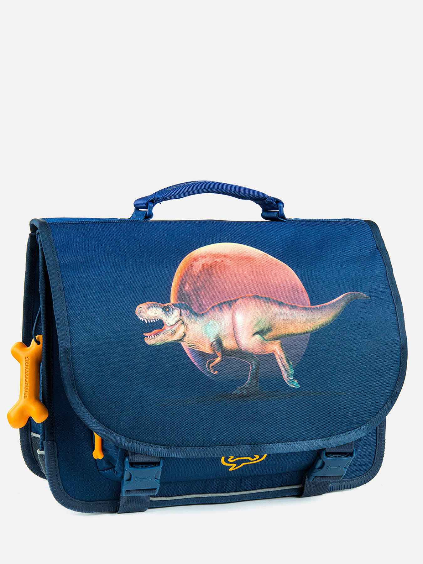 38 cm - 15 litres - 0.88 kg ~ Cartable garçon 38 cm de la marque Stones and Bones. Ce cartable enfant est idéal pour le CP, CE1 et CE2. Il se divise en deux compartiments et peut contenir les formats cahiers A4 et 24x32cm. On retrouve à l'intérieur une petite poche à fermeture zippée. Pratique, il dispose de deux poches à fermeture éclair sur le devant (sous et sur le rabat), idéales pour un petit goûter ou l'agenda. Petit plus, ce cartable dispose d'une étiquette nom. Le fond et les angles du cartable sont renforcés pour plus de solidité et des bandes réfléchissantes sont disposées autour du sac et sur les bretelles. Conçu pour le confort des enfants, le dos et les bretelles sont rembourrés.