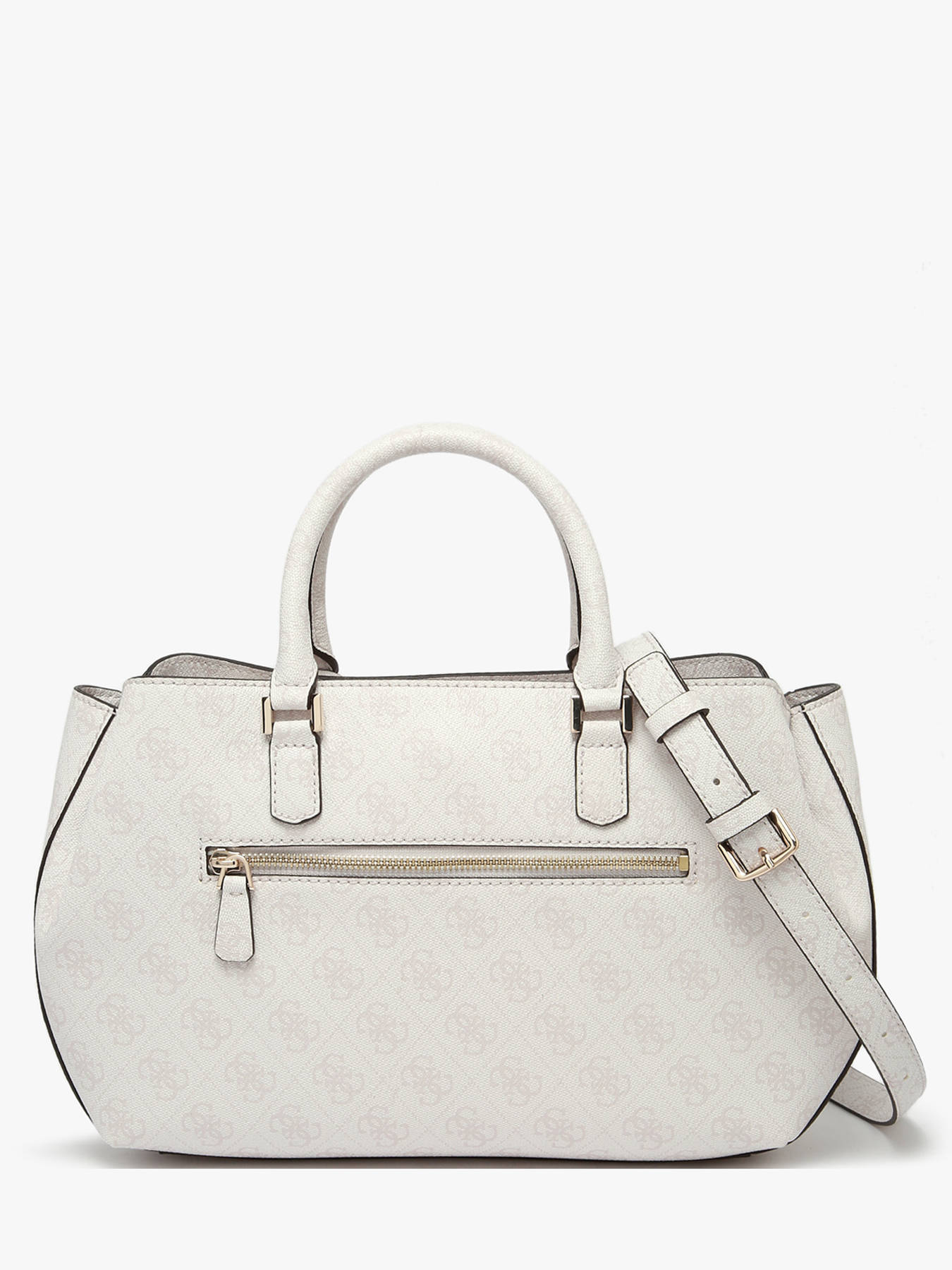 The KATYA Guess handbag, crafted from coated canvas, combines practicality and contemporary style. Its elegant design features a main compartment, two simple interior pockets, and a zip pocket, providing secure storage for your essentials. On the exterior, one front pocket and two back pockets offer quick access to everyday items. The zip closure ensures effective protection, while the adjustable and removable shoulder strap allows for versatile carrying—handheld or crossbody. With a 10.5 cm handle height, the KATYA is perfect for daily use, balancing comfort and functionality. Lightweight and durable, this bag merges elegance with practicality, making it an ideal accessory to enhance urban outfits with a modern, refined touch.