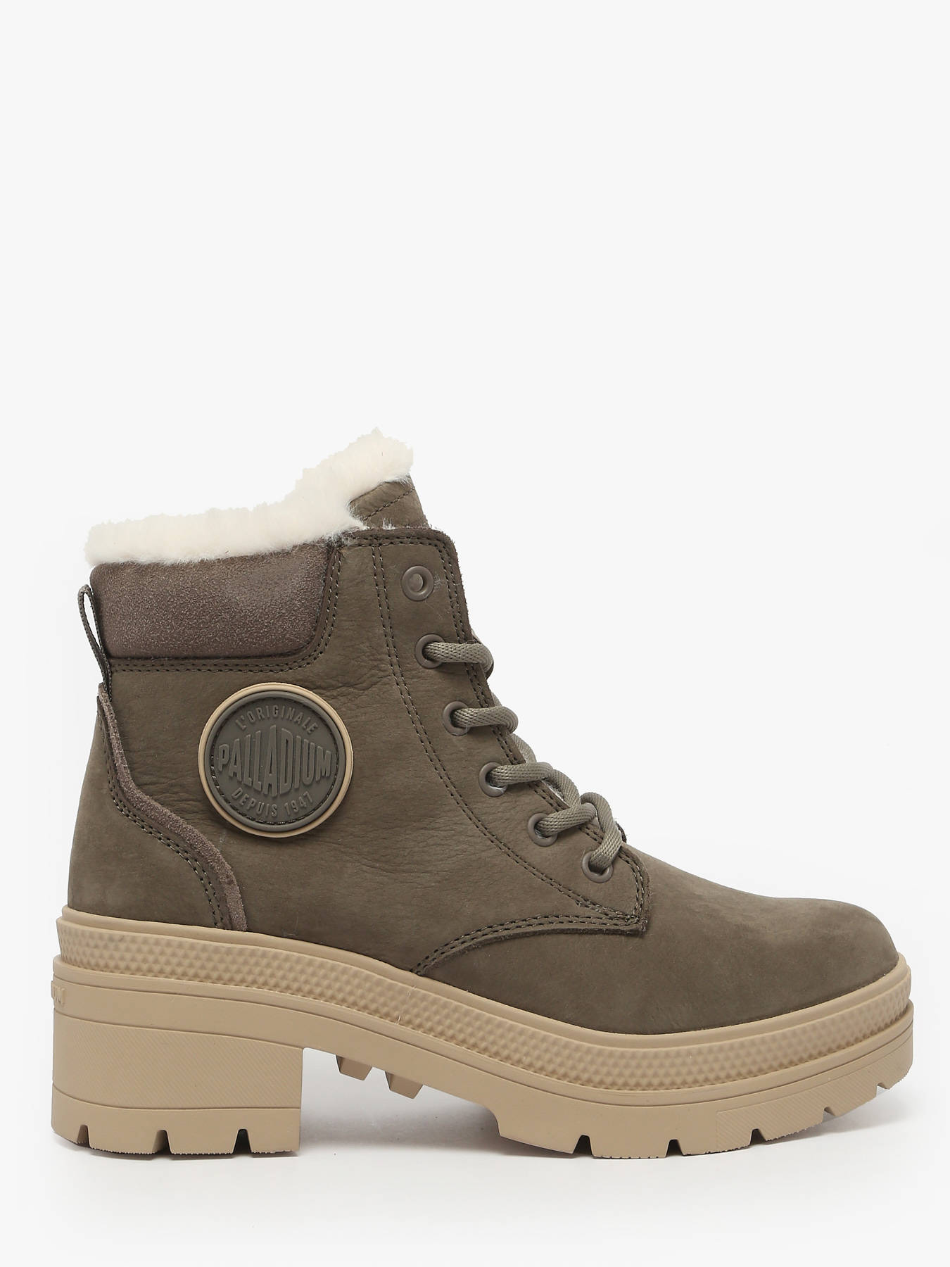 Combine style and comfort with the PALLARISE NBK WL heeled ankle boots by PALLADIUM, designed to elevate your outfits while providing support and warmth. Their nubuck-finish leather upper adds elegance and refined texture, while the synthetic fur lining offers comfort and softness even in cooler weather. Practical and secure, they feature both lace-up closure and a side zipper for easy wear and a perfect fit. The 6 cm wide heel ensures stability and confident strides, ideal for daily wear. The textile insole completes the design by providing breathability and optimal comfort. These versatile boots adapt to any look, combining modernity, urban style, and functionality, making them a wardrobe essential from PALLADIUM.